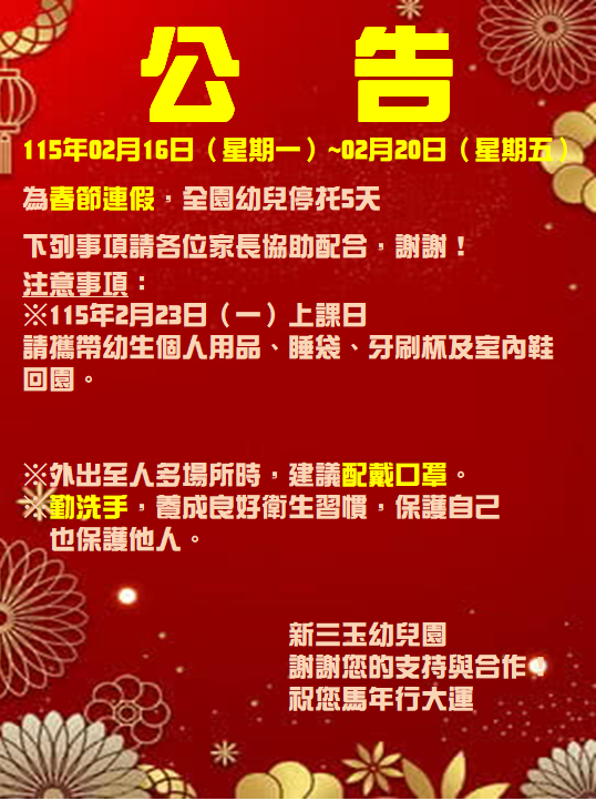 春節公告